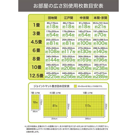 機能:カット自在、弾力性、耐久性、防音性、保温性、衝撃吸収、床面保護