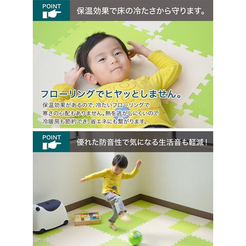 特徴:【優れた防音性】しっかりとした弾力で、お子様の足音や振動などの気になる生活音をしっかりと吸収・軽減して騒音を抑えてくれます.【お手入れ楽々】汚れた部分のマットだけ外して洗えるので、お手入れ楽々.お菓子やジュースなどをこぼしても、ふきんでサッと一拭きするだけ.