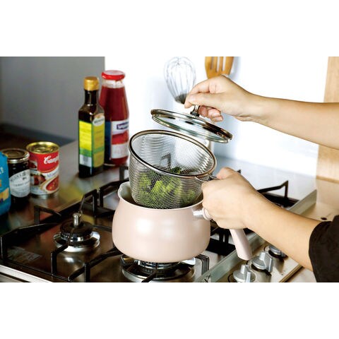 コパン copan ザル付き多用途鍋1.8Lベージュ 片手鍋 調理器具 クッカー コンパクト セラミック加工 ガラス蓋 注ぎやすい 手入れ 料理 クッキング キッチン 朝食 お弁当 870586のレビュー
