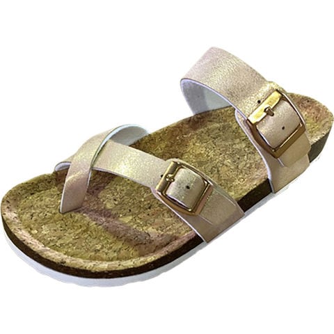 エドウィンの天然コルク素材のレディースサンダル.天然ゴム+天然はコルクは圧で形状変化し、履いた人の足に合わせて馴染む天然コルク.