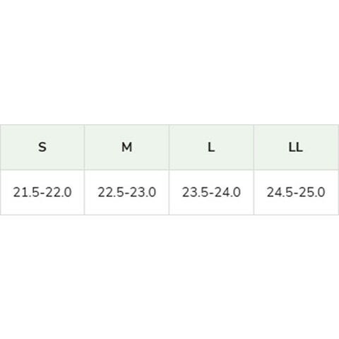 サイズ:S/21.5-22.0cm、M/22.5-23.0cm、L/23.5-24.0cm、LL/24.5-25.0cm