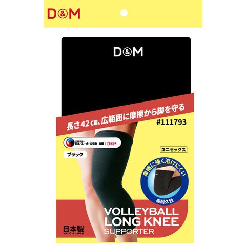 バレーボール用のヒザ・もも用ロングサポーター.摩擦に強く溶けにくい.吸汗速乾性があるのでムレを最小限に抑えます.縦伸び機能で抜群のフィット感と動きやすさを実現.