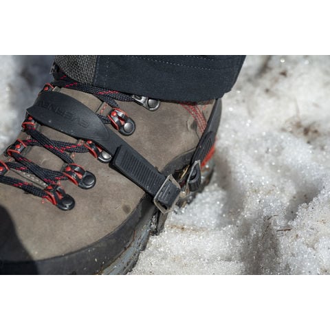 雪渓の定番.もっともコンパクトに収納可能な簡易アイゼン.登山靴からローカットシューズまで幅広く装着が出来ます.