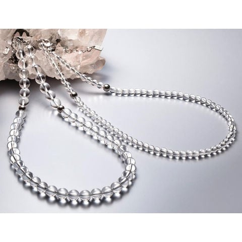 厳選されたクリスタルアクセサリー.昔から神秘的なパワーがあると珍重されてきた水晶を、独自の品質チェックにより厳選して使用したネックレスです.留め具はアジャスター付きで、最大5cmの延長が可能.ファイテンロゴを刻印したチタンボールを2玉配置しました.