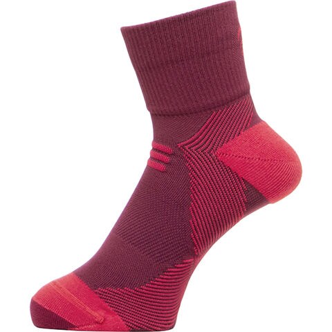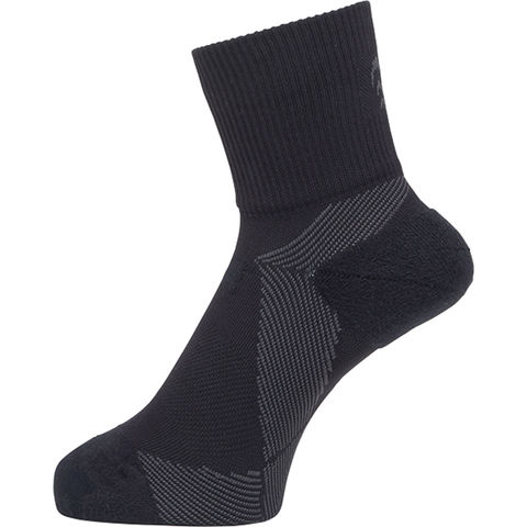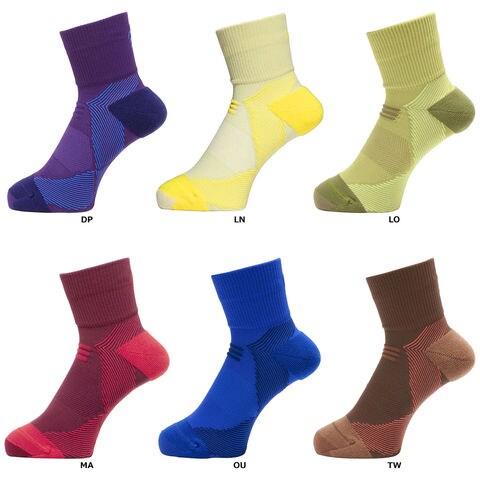 足裏にある3つのアーチをサポートするテーピング構造を持ったソックス.足裏の内側縦アーチ、外側縦アーチ、横アーチをサポートして、足にまつわるトラブルの原因となりやすいアーチの崩れを軽減.アーチを支えることで、着地時に脚にかかる衝撃を吸収するだけでなく、足裏アーチがバネの役割を果たして推進力をもたらします.ソックス内側のつま先とかかと部分は、クッション性の高いパイル構造に.つま先は、強度の高い糸に切り替えて補強しています.くるぶしがしっかり隠れるクォーター丈.環境への負荷に配慮してリサイクル素材を使用しています.特許登録済み(特許番号:5704860号)