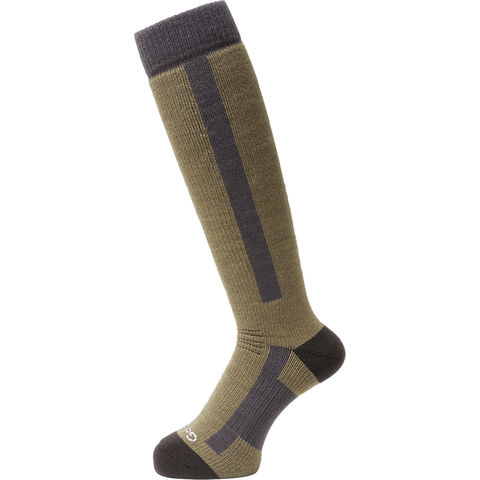 メリノウールの機能性と C3FIT 独自のサポート構造を併せ持つ、ウィンタースポーツ用ハイソックス.保温性を重視したコンフォートな履き心地の中厚タイプで、初級~中級者におすすめのアイテム.ベース素材としてアクリルとウールを使用し、パイル構造にすることで高い保温性をもたせています.ウールの吸放湿性を備えており、暖かくてもムレにくいのが魅力.パイル構造が中心でクッション性があり、ブーツのあたりを軽減できます.レッグ部分とフット部分のサイドラインだけパイル構造にしないことで、通気性とフィット感が向上.ソックス内のムレを軽減して、ブーツ内での生地のたまりを抑えられます.足裏にはクロステーピング構造を採用し、内側縦と外側縦のアーチを・