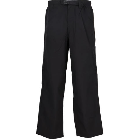 軽量感のあるナイロン素材を使用したシェルパンツ.はっ水加工を施し、多少の雨や汚れに対応します.両サイドにポケットを配置.ウエストはサイズ調節のしやすいウェビングベルト仕様です.シンプルなデザインで、アウトドアはもちろん、日常のさまざまなシーンで幅広く活用できるアイテムです.