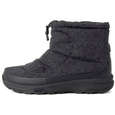 テックプルーフ防水メンブレンをインサートし、サーモライトの中わたで軽量さと保温性を向上させた、防寒用防水ウィンターショートブーツです.カラー毎に異なるアッパー素材を使用.BKカラーは、摩耗強度を高めた100リサイクルリップストップナイロン.WBカラーはカジュアル感を高めたリサイクルウール.FKカラーは、キャンプシーンに嬉しい難燃性のファイヤーレジスタンスナイロンクロスを使用しています.それぞれのアッパーには、はっ水加工を施し、耐水性を向上.ソールには、THE NORTH FACEオリジナルのヴィブラムアイストレックを採用.低温によるラバー材の硬化を抑えることで優れたグリップ力を発揮します.