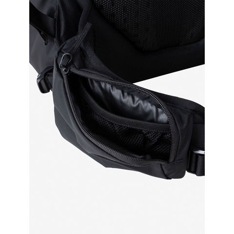 雨蓋前後にヘルメット固定用のリフレクターループ、雨蓋裏面にはキークリップつきファスナーメッシュポケット、ワンタッチで開閉可能なスカート部分、ポケットつきのヒップハーネス、ハイドレーション対応