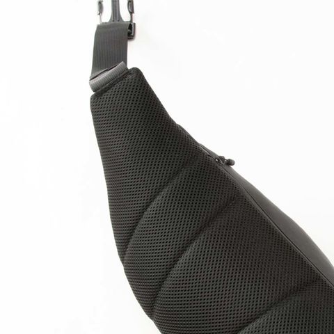特徴:内側にメッシュディバイダーとキークリップつき、背面にファスナーポケット、ウエストのウェビングテープは片引きタイプ