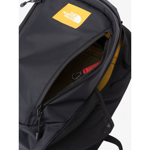 仕様:肩にフィットするショルダーハーネス、一定の荷重がかかると開放するホイッスルつきのチェストバックル、フロントに縦型ファスナーのついたダブルポケット、ダブルポケットの右側は、内部にアクセス可能、サイドメッシュポケット、