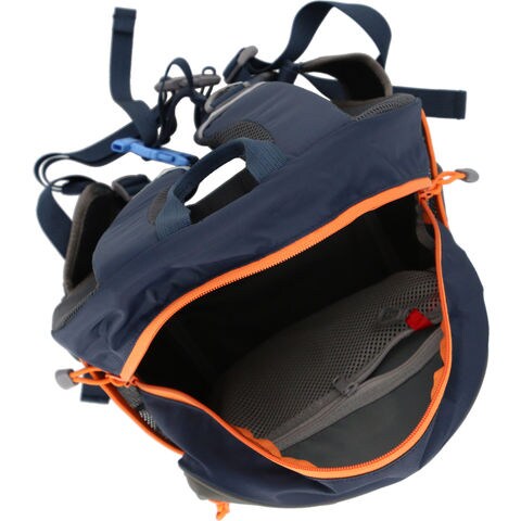 仕様:肩にフィットするショルダーハーネス、一定の荷重がかかると開放するホイッスルつきのチェストバックル、フロントファスナーポケット、本体内部にファスナーつきメッシュポケット、ショルダーハーネスにフックつきDリング、サイドメッシュポケット、本体とショルダー部分にリフレクタ―、