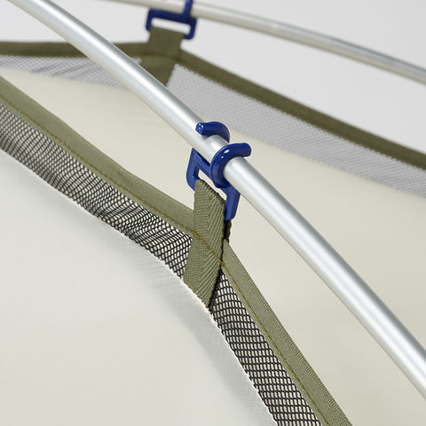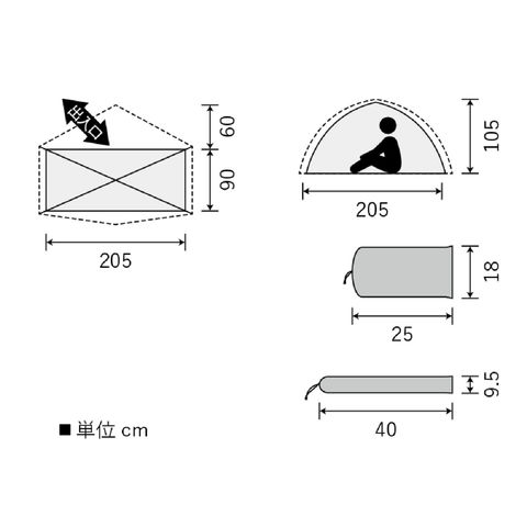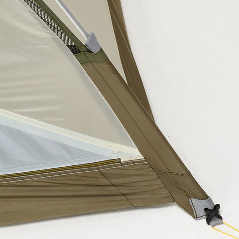 素材:フライシート /20D ナイロンダブルリップストップ ( ポリウレタン防水加工 ) 、インナーテント /10D ナイロンリップストップ ( 通気撥水加工 ) 、本体グランド部 /30D ポリエステルリップストップ ( ポリウレタン防水加工 ) 、ポール / ジュラルミン (DAC/NFL9.3MM)