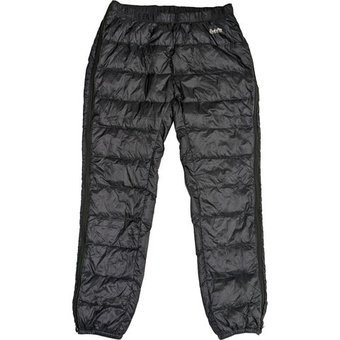 フィールドでシューズを脱がなくても着脱ができるサイドフルオープンのダウンパンツ.パンツの上から着られるように大き目サイズです.