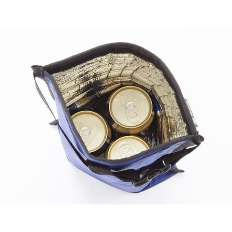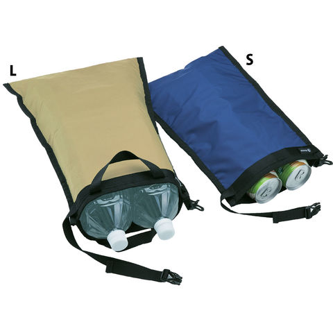 運搬用のハンドルを装備、2Lペットボトルが2本入ります.丈夫なナイロン生地の内側にアルミ蒸着の断熱材をライニングしています.持ち帰る際には折りたたんでコンパクトに収納できます.