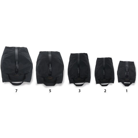 70デニ-ルのウェザ-テック素材、止水ファスナ-で仕上げたポ-チです.出張やビジネス用途にも適したマットなブラックカラ-です.大きめのモデルは出張時の予備の衣類など、小さなモデルはモバイルの小物などに最適です.