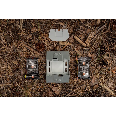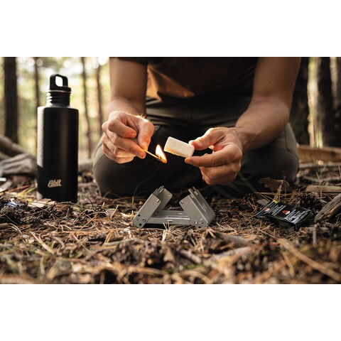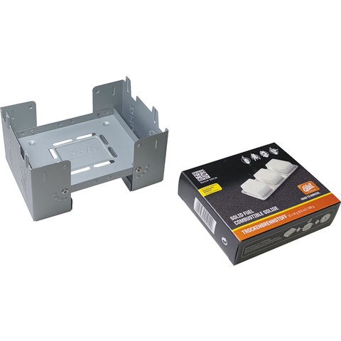 固形燃料を折りたたんだ五徳中に収納しているので簡単にポケットにしまえます.14gタブレット1個でほぼ600ccのお湯が沸かせます.ドイツ軍、オーストリア軍、フランス軍の標準装備とし採用されており、キャンプ、登山、災害時のサイバイバル用品として最適です.