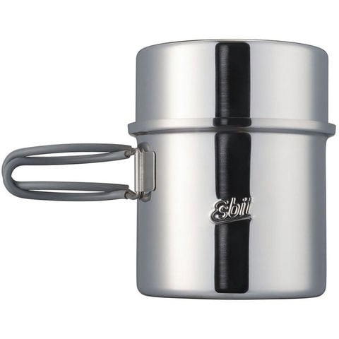 丈夫で長く使える高品質なステンレススチール製ポット.容量は スモールが 475 mlとラージが 1000 ml.スモールポットがラージポットの蓋になります.ラージポットにはml / oz単位で目盛り付きです.ハンドルには折りたたみ式で蓋にはポットの縁に引っかけておけるハンガー付きです.メッシュバッグが付属しています.