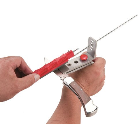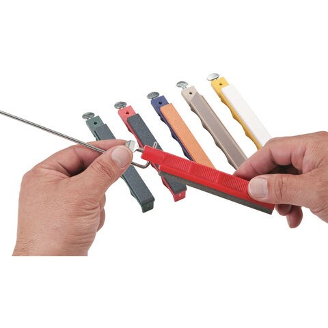 ランスキーナイフシャープニングシステムは簡単にプロの砥ぎ味を出してくれます.このシステムはナイフを固定するクランプと砥石ガイド棒によって30、25、20、17度それぞれ適当な砥ぎ角度を選ぶことができます.砥石は色別されていて直観的に区別でき、砥石の握り部分はフィット感が良く指の保護にも役立っています.このキットを使用することによりナイフ砥ぎの初心者でも上手に切れ味よいナイフにすることができます.基本的なランスキーのシャープニングキットの3本にさらに2本の砥石を加えたデラックスなキットです.