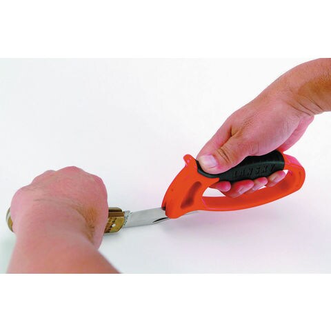 シャープニングディップはタングステンカーバイトですので3~4回ナイフ刃をこするだけで簡単にシャープニングできます.ハンドルにはノンスリップラバーが使用されホールドを良くしています.