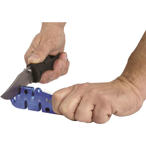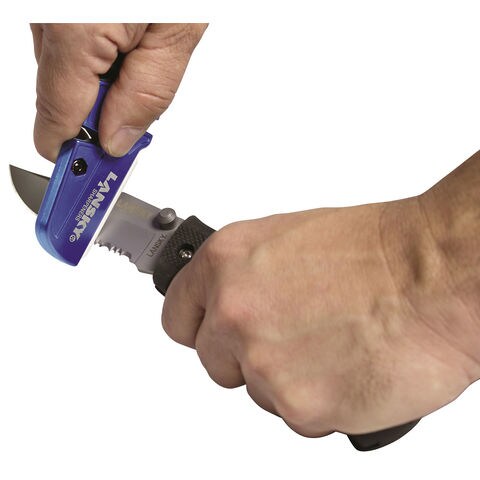 ナイフのメンテナンスにはランスキーのシャープニングシステムの使用をお薦めいたしますが、限られたフィールドではランスキーのフルセットを持ち運ぶことも大変です.そこで、ランスキーシャープニングシステムをひとまとめにしたのが、このクワッドシャープです.グワッドシャープのタングステンカーバイトでできたV字の溝に差し込み、3-4回引くだけでナイフのシャープさが戻ります.そしてセラミックのベンチストーンでポリッシュすることでナイフのメンテナンスが完了します.