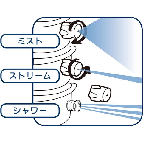 特長:3スプレーパターン(シャワー/ストリーム/ミスト)、2モード(ステルス/パルス)
