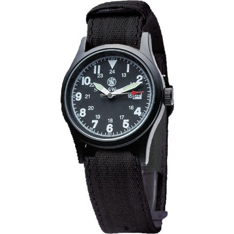 往年のミリタリーウォッチの定番を守った腕時計.コンパクトな盤面と、闇に紛れるブラックカラーの文字盤・キャンバスベルトが特徴.蓄光塗料を長針・短針に塗っているため暗闇でも視認性に優れる.軽量化のためにキャンバスベルトを装着し、重量わずか44gを再現.激しい運動時でもストレスなく使える.