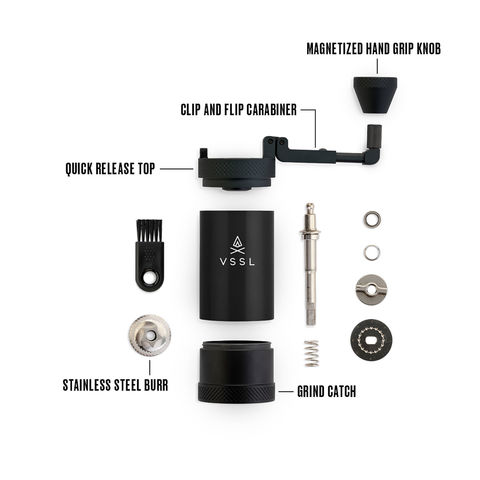 ジャバは、おいしいコーヒーを簡単かつ直感的に実現するために作られたハンドグラインダーです.VSSLの特徴であるクリップ&フリップレバーは、パックに留められるキャリングハンドルとしての役割と、拡張可能なクランクとしての役割を果たしており、グラインド時に最もスムーズで簡単な回転を得ることができます.また、マグネット式のハンドルを装着することで、より使いやすくなりました.また、ボタンを押すだけでトップが外れ、豆を入れるのも簡単です.
