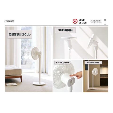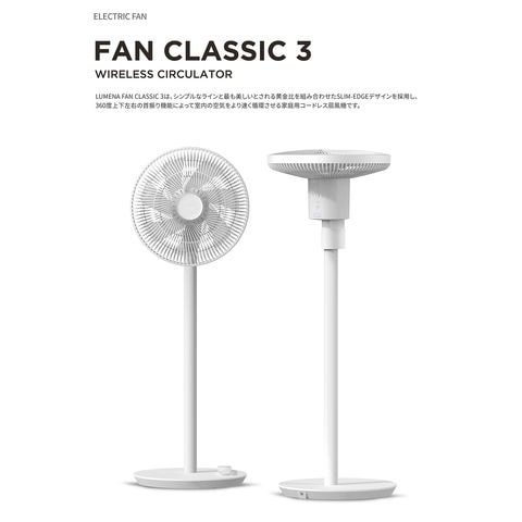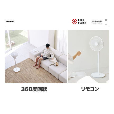 ルーメナー LUMENA コードレス扇風機 FAN CLASSIC3 扇風機 バッテリー内蔵 首振り 静音設計 リモコン 簡単操作 熱中症対策 タイマー 自然風モード ナイトモード FANCLASIC3