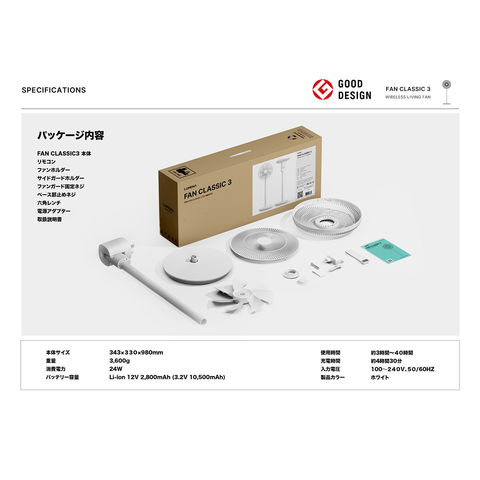 セット内容 :本体、リモコン、ファンホルダー、充電アダプター、取扱説明書
