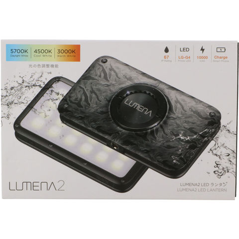 LUMENA 2は、昼光色・昼白色・電球色の3つのLED発行色に切り替えが可能.明るさも4段階に切り替えられます.ご利用シーンに合わせて、色と明るさをお選びください.高度な技術力で作られた[LUMENA 2]は、ルーメナーシリーズで唯一の防水・防塵仕様(IP67).光量も最大1500ルーメンという圧倒的な明るさを発揮します.アウトドアシーンでは付属の180°可動式磁石フックを使用し、テントの生地を挟んで固定できるので、お好きな位置に取り付けることが可能.本体の三脚ネジ穴を使用し、三脚・カメラ・デジタルビデオカメラなどへの取り付けも可能.モバイルバッテリーとして様々な機器へ充電ができるので、防災用としても重宝します.