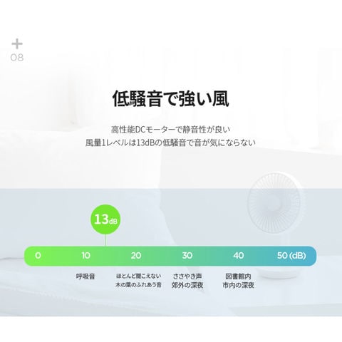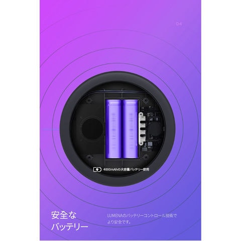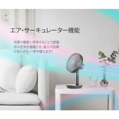 コードレスで最大20時間使用.斜めサーキュレーター機能.4000mAhの大容量バッテリー内蔵.エコ・低騒音のBLDCモニター.4段階風量調整機能.