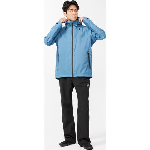 アウトドアから日常まで活躍する、高耐水透湿の[ジャケット]と[パンツ]の上下セット.縫い目にはシームテープ加工を施し、ジッパーは水の浸入を防ぐ止水仕様.高耐水透湿素材を採用し、雨を防ぎつつ衣類内部の湿気を外部へ逃すことでムレを軽減.袖部分は、腕の動かしやすさを重視したオリジナルの袖パターンを採用し、パンツの膝にはダーツ仕様を取り入れ、アクティブな動きにも対応.コンパクトに収納できる専用袋付きで、持ち運びにも便利です.キャンプや釣りなどのアウトドアシーンはもちろん、雨の日の自転車通勤や移動時にも最適.シンプルでスタイリッシュなデザインのため、ジャケット単体でも普段着に合わせやすく、幅広いシーンで活躍します.