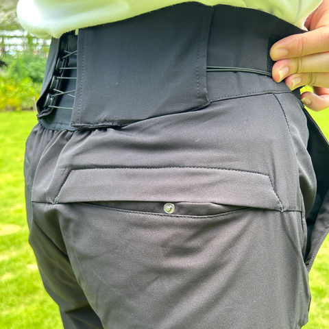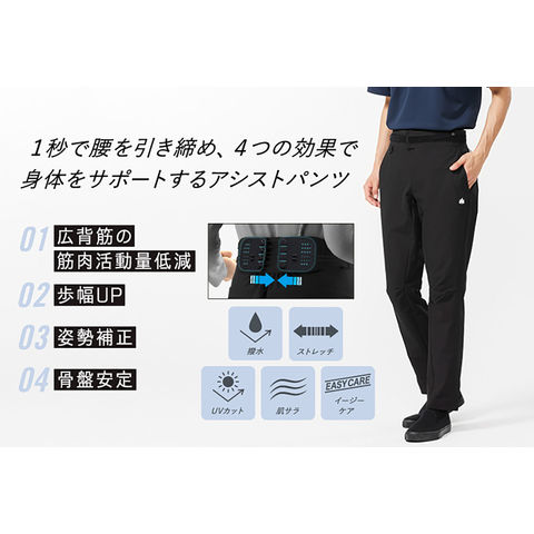 特徴:腰部分にサポートベルトを採用した、腰を守るサポートパンツ.広背筋の筋肉活動量軽減.姿勢補正.骨盤安定.歩幅アップ.トレッキングパンツのデザインを採用.