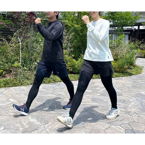森ノ宮医療大学との共同開発により誕生した、履くだけでテーピングのサポート効果を体感できる高機能レギンス.理学療法の視点に基づく 7 つのテーピングラインが、骨盤やひざなどの主要な関節をしっかり支え、動きの安定性と負担軽減をサポートします.吸湿速乾・抗菌防臭機能付きで日常でも快適に使え、紫外線対策としてもおすすめ.日常のウォーキングや立ち仕事など、幅広いシーンで活躍する 1 本です.