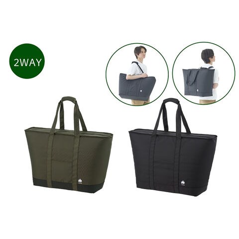 氷点下パック (R) と相性抜群!約 41L のクーラートートバッグ & リュック.キャンプ場からスーパーまで大活躍!トートバッグにもリュックにもなる 2WAY 仕様の大容量クーラーバッグです. 10MM 厚の断熱材を使用し、優れた保冷力を発揮し、内側には氷点下パック (R)XL サイズが収まる専用ポケットも備え、氷点下パック (R) シリーズと組み合わせればさらに保冷力アップします.アイスクリームや冷凍食品、飲料の持ち運びにも安心です.内側生地には抗菌加工、外側には撥水加工を施しアウトドアシーンでも使いやすい仕様になっています.アウトドア、ショッピング、レジャーにぴったりな、デザイン性と機能性を兼ね備えたトートクーラーです.