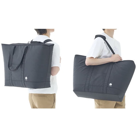 氷点下パック (R) と相性抜群!約 41L のクーラートートバッグ & リュック.キャンプ場からスーパーまで大活躍!トートバッグにもリュックにもなる 2WAY 仕様の大容量クーラーバッグです. 10MM 厚の断熱材を使用し、優れた保冷力を発揮し、内側には氷点下パック (R)XL サイズが収まる専用ポケットも備え、氷点下パック (R) シリーズと組み合わせればさらに保冷力アップします.アイスクリームや冷凍食品、飲料の持ち運びにも安心です.内側生地には抗菌加工、外側には撥水加工を施しアウトドアシーンでも使いやすい仕様になっています.アウトドア、ショッピング、レジャーにぴったりな、デザイン性と機能性を兼ね備えたトートクーラーです.