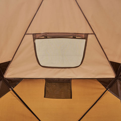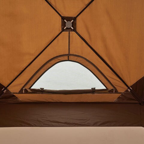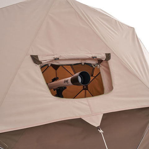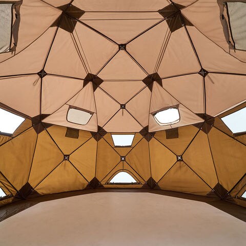 12個のパネルで構成された8角形の大型テント.全方位に10個の窓が配置.