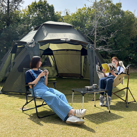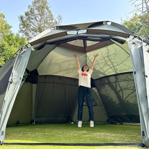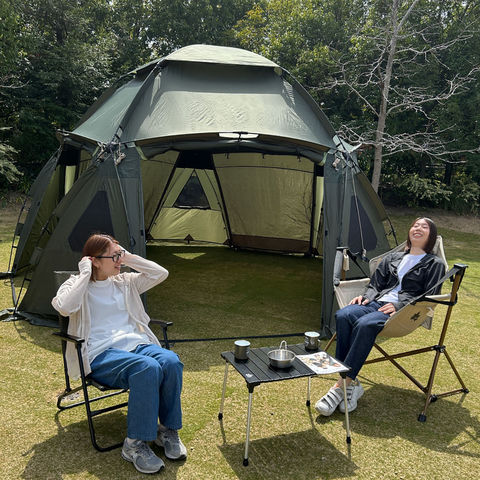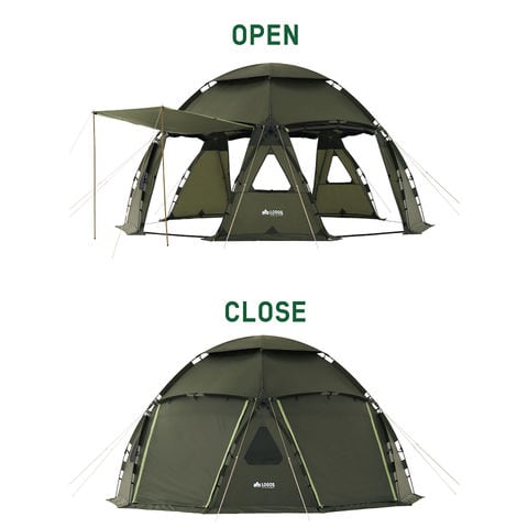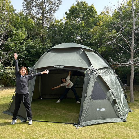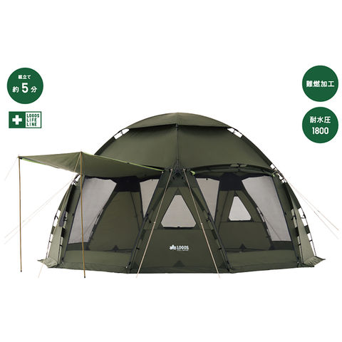 5 分で完成する高さ 2.7M のドーム空間.クイックジョイントを伸ばす・折りたたむだけで組立てや撤収ができる[ QUICK SYSTEM ]を搭載し、設営時間はわずか 5 分.幅約 5M 高さ約 2.7M の広々空間で、大人数キャンプにも最適.全方位に設けたメッシュ窓により、通気性も抜群.フルクローズや全てオープンにしてスクリーンタープのような使い方もできます.フライシートは防水性、撥水性、難燃性にすぐれ、紫外線もカットします.折りたたまれたフレームを伸ばしてロックするだけなので、組立て簡単&スピーディ.シートとフレームは一体化しているため、パーツを紛失する心配もありません.
