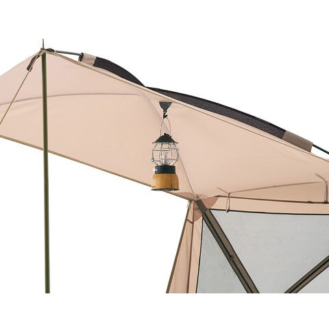 組立て約 90 秒!パネルを引っ張るだけの耐風性に優れたドーム型スクリーンタープ.生地とフレームが一体になっているので、パーツが少なく、設営も簡単.遮光ウォール付きでなので日差しを遮ります.