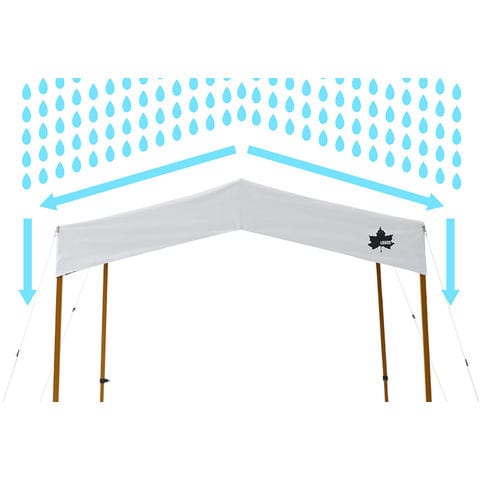 簡単設営約 3 分&高さ調節 3 段階!雨天時の出入りで濡れにくい切妻モデル.雨水を左右方向へ導き、前後方向への雨だれを軽減するので出入り時に濡れにくい.会議机 (180CM) がピッタリ収まるサイズなので、イベント時の受付利用にもおすすめ.シートには、ソーラーブロック加工を施し、 UV カット率 99.9 以上、遮光率 100 ! ( ※ 1 ) 日向と日陰で- 15 ℃の温度差を実現