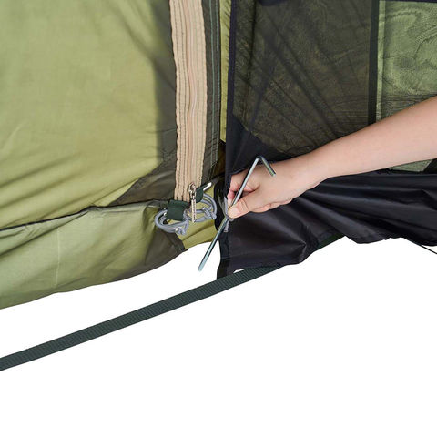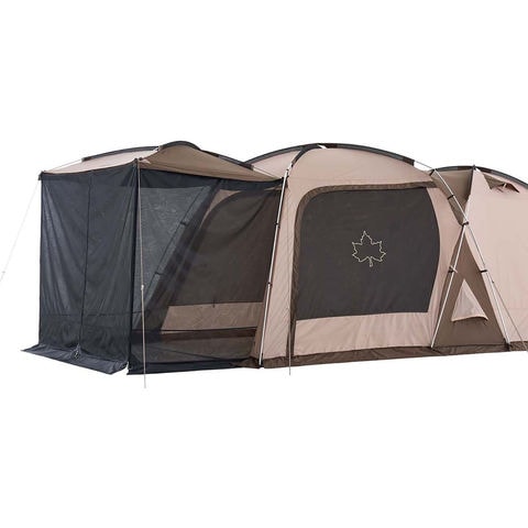 ドゥーブルに取り付けるだけで3ルームが実現するオプションアイテム.素材に高機能メッシュ[デビルブロック ST]が使われていて、キャンプにおける大敵、[紫外線][強い日差し][害虫]=デビルを防ぎながらも、テント内には心地よい風が入ってきます.別売りの対応テントに取り付けるだけでリビングスペースが拡張し、広々快適な3ルームが実現します.PANEL SYSTEMのフックや本体のジッパーなどに取り付けてペグダウンすれば装着できます.吊り下げ式なので、取り付けも取り外しも簡単仕様.ランタンを設置できるフックを装備しています.持ち運びに便利な専用の収納袋が付いています.