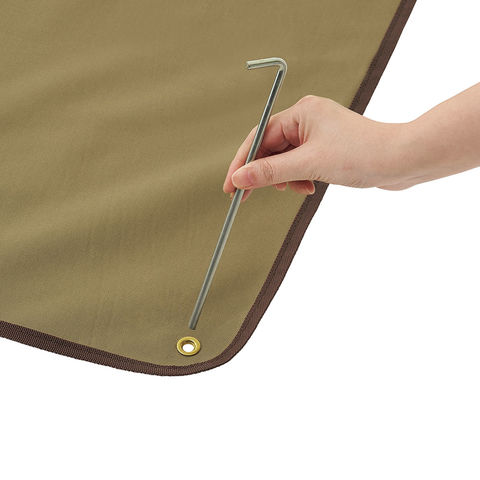 四隅にグロメットがあるのでペグ打ちで地面に固定可能.裏面のPVCコーティングで地面からの浸水や湿気をシャットアウト.テントにつく汚れや傷みも軽減します.持ち運びに便利な収納バッグが付いています.