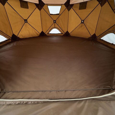 [どんぐりPANELドーム290]対応のグランドシート.グランドシートを敷く事により地面からの浸水や湿気を遮断します.テントやタープに使われる極厚生地を使用.居住空間を造り出します.着脱式で、フックを掛けるだけで簡単設置出来ます. ※テント本体は別売です.