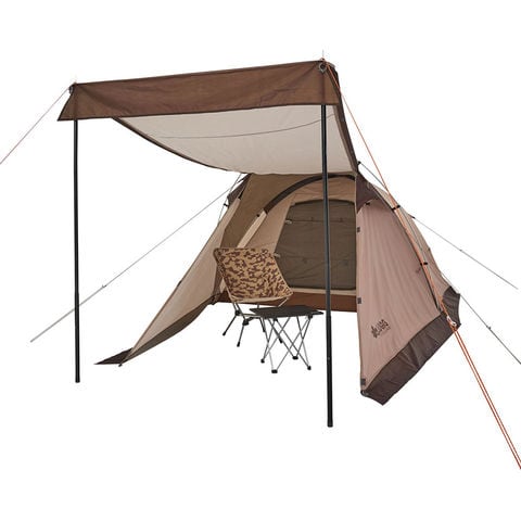 ツーリングに最適!大型前室付きのコンパクトな2人用テント.テント前面を大きく張り出すよう設計することで、バイクが置ける大型前室を実現.前室に駐車できるので、雨の日でも安心してすごせる.組立てもしやすく、収納時はコンパクトに.雨風や虫の侵入も防ぐマッドスカート付きで、フレームには丈夫で軽いアルミ素材を採用.テント上部ベンチレーションを設けています.空気が循環するので室内でも快適に過ごせます.インナーテントには、上下にベンチレーションを備えたC型ドアを採用しています.テントサイトにマッチするアースカラー