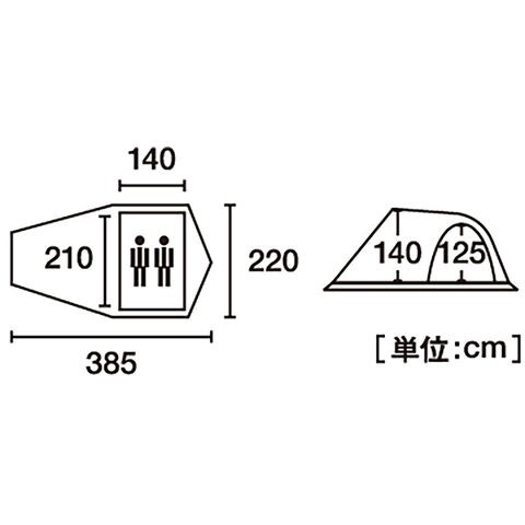 機能:[フライシート]防水加工、撥水加工、難燃加工(米国基準CPAI-84適合)、UV-CUT加工、フルマッドスカート、バックドア、ベンチレーション、回転式ジッパー、[インナーテント]C型ドア、ブリーザブル撥水加工、電気コードジップ、ベンチレーション、回転式ジッパー