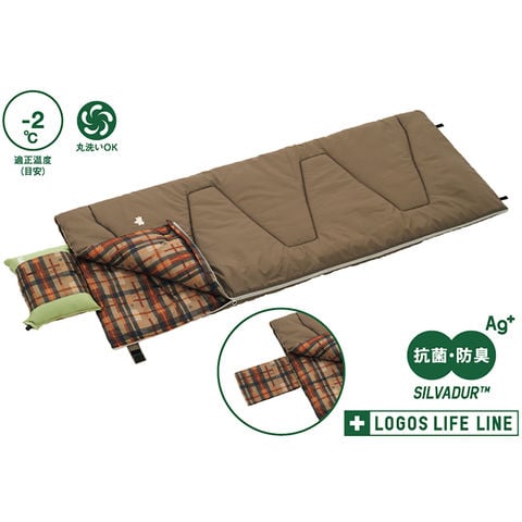 ロゴス LOGOS 抗菌防臭 丸洗いサウンドリーシュラフ・-2 枕ホルダー付き 寝袋 寝具 洗濯可能 抗菌 防臭 収納袋付き キャンプ テント 車中泊 防災 台風対策 災害対策 72600018