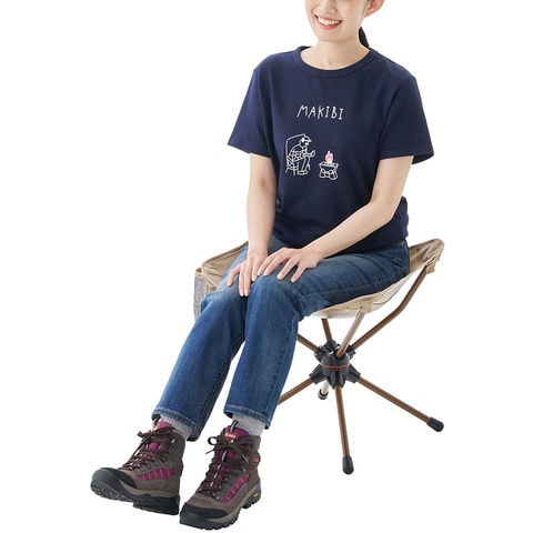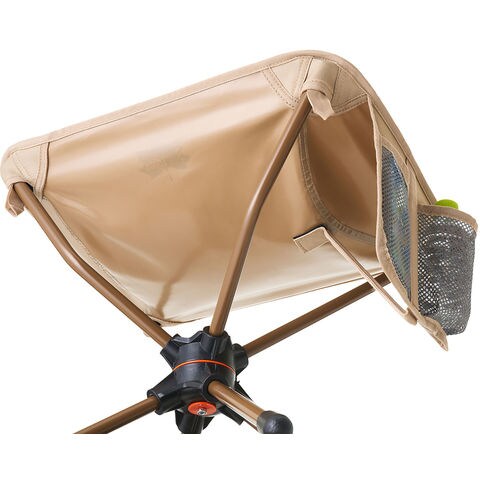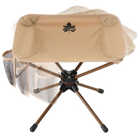 360 °回転式の座面 / 狭いスペースでも小回りがきく、 360 °回転式の座面.座りながら体の向きをスムーズに変えられるので、キャンプ場での調理時や、動く被写体をカメラで追いやすく、運動会などでお子様の撮影時のチェアとしてもおすすめ.