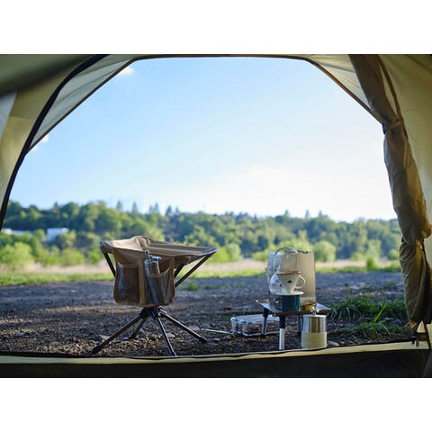 キャンプ場での調理や焚き火でちょっと腰掛けたい時のためのスツール.回転式座面で作業中の動きもスムーズに.オットマンとしても活用出来ます.たき火やウォッチングに最適!回転式ロースツール.オットマンとしても使える、ちょっと腰掛けたい時に便利な 360 °回転式のロースツール.体の向きをスムーズに変えられるので、キャンプ場での調理時や、運動会でのお子様のカメラ撮影時にも活躍.フレームにはスチール素材を使用することで、回転する構造ながら安定感も確保.スマートフォンやドリンクが入る便利な収納ポケット付き.生地とフレームが分かれるセパレート構造により、コンパクトに収納できるのもうれしい.たき火でちょっと腰掛けたいときにも.