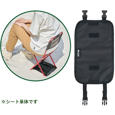 トレックチェアを砂地、泥濘、雪上等の不安定な地形に対応させるためのオプションシート!バックル式なので簡単に着脱できます.シートを装着したままチェアの折りたたみも OK です.巾着式の収納袋付属のため、使用後の持ち運びにも便利です.